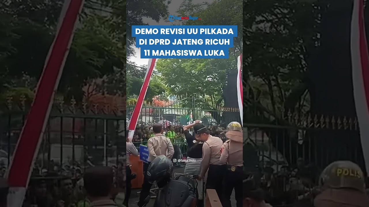 TRIBUN-VIDEO.COM, SEMARANG - 11 mahasiswa luka-luka saat aksi unjuk rasa menentang revisi UU Pilkada di Jalan Pahlawan, Kota Semarang, Jawa Tengah berakhir ricuh, Kamis (22/8/2024).
