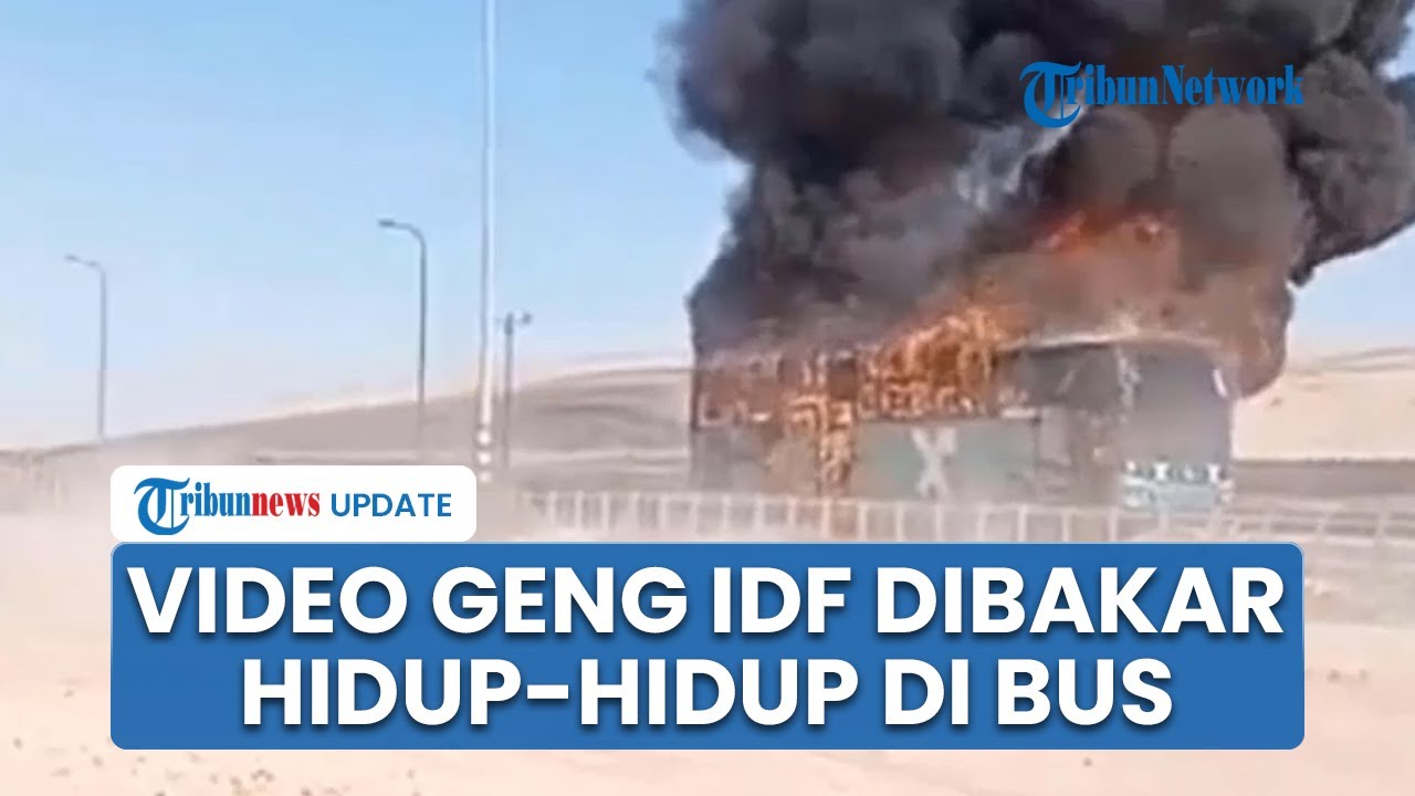 Terlihat kobaran api menyelimuti bus berisi tentara IDF hingga tewas terbakar hidup-hidup. (Tribun-Video.com)