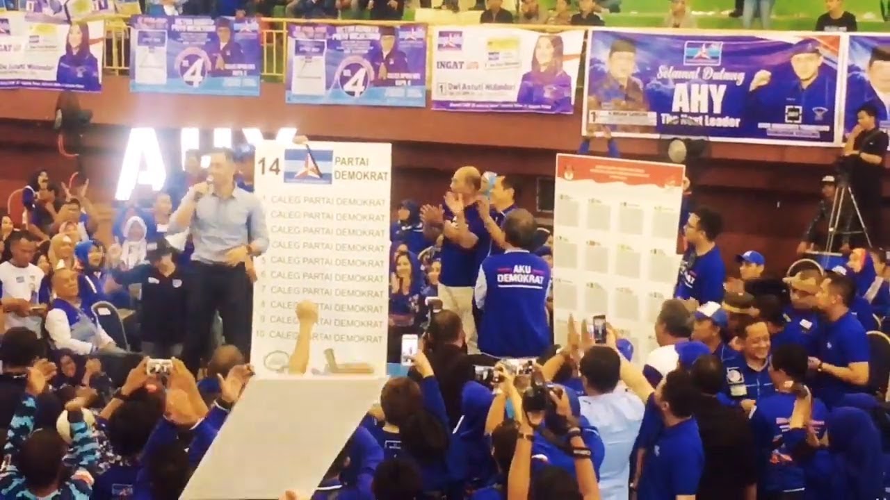 TRIBUN-VIDEO.COM - Ketua Kogasma (Komando Tugas Bersama) Partai Demokrat, Agus Harimurti Yudhoyono (AHY) menandai rangkaian kampanye terbuka Partai Demokrat dengan melaksanakan 'town hall meeting' di GOR Ciracas, Jakarta Timur, Minggu (24/3/2019).