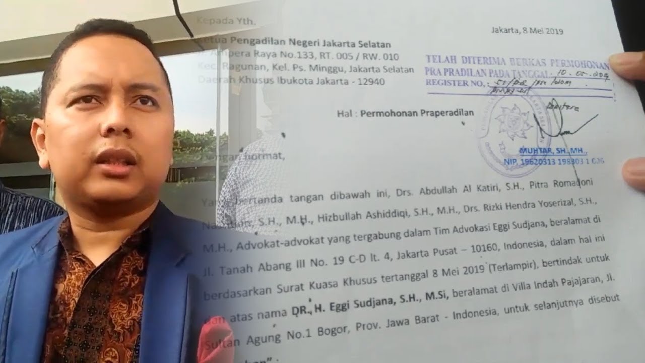 TRIBUN-VIDEO.COM - Anggota tim kuasa hukum politisi Partai Amanat Nasional Eggi Sudjana, Pitra Romadoni Nasution mendatangi Pengadilan Negeri Jakarta Selatan untuk mendaftarkan gugatan praperadilan kliennya pada Jumat (10/5/2019).