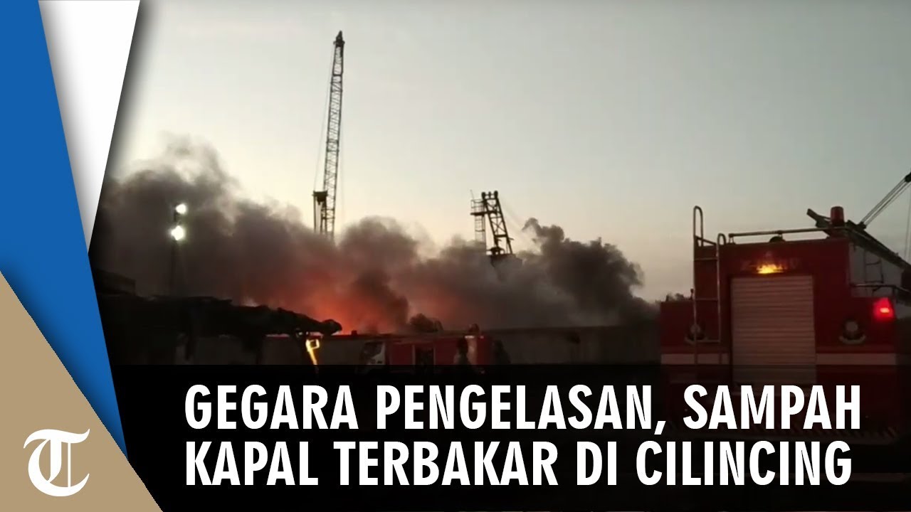 Gara-gara Pengelasan, Sampah Kapal Terbakar di Pinggir Laut Cilincing