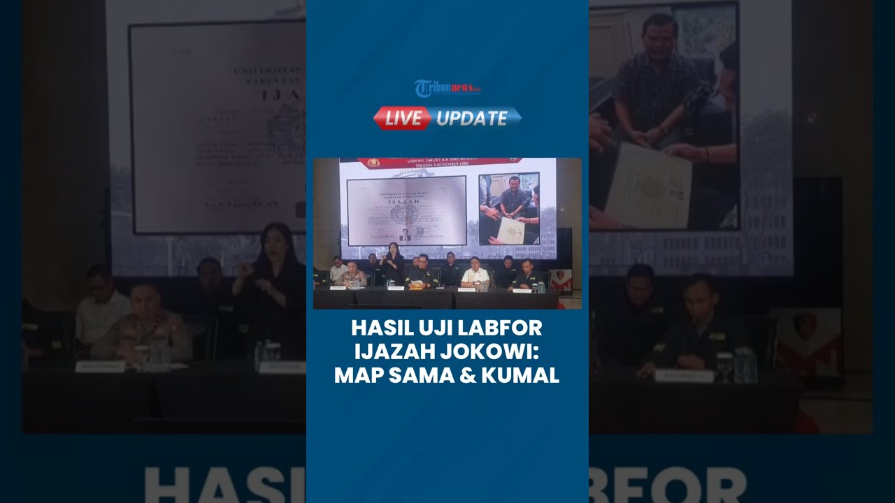 Hasil uji laboratorium forensik menyebut seluruh elemen ijazah Jokowi dinyatakan identik, termasuk jenis kertas, tulisan, dan map penyimpanan dokumen.