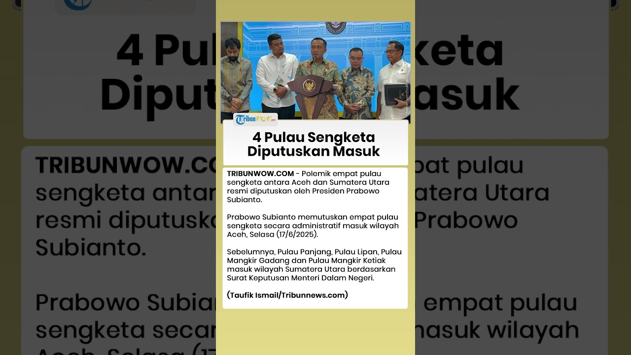 TRIBUN-VIDEO.COM - Polemik empat pulau sengketa antara Aceh dan Sumatera Utara resmi diputuskan oleh Presiden Prabowo Subianto.