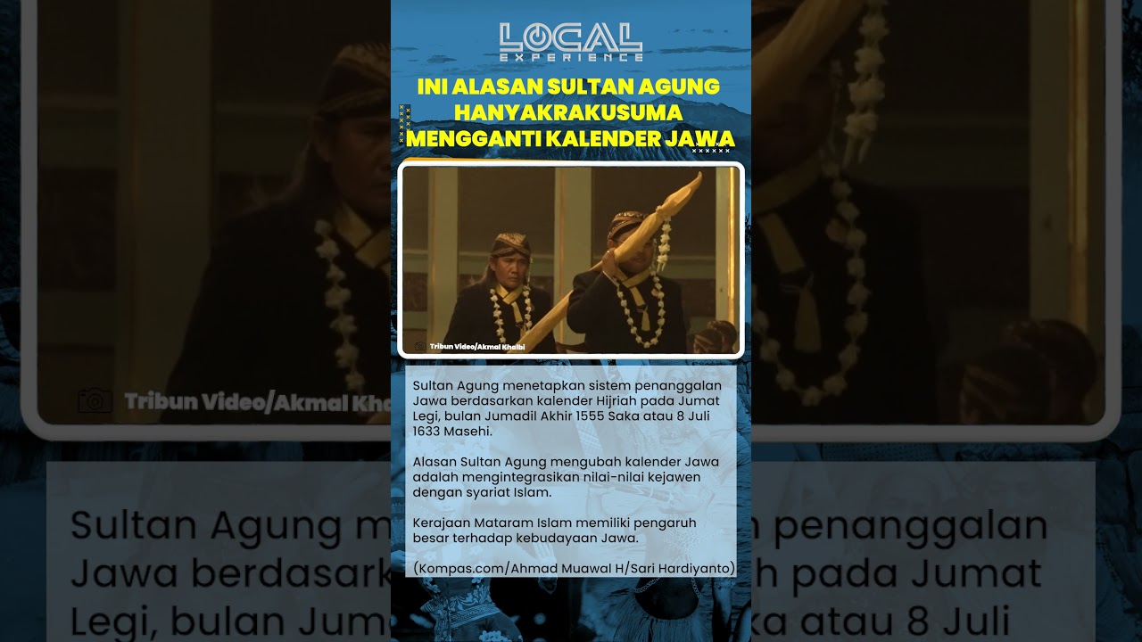TRIBUN-VIDEO.COM - Sultan Agung menetapkan sistem penanggalan Jawa berdasarkan kalender Hijriah pada Jumat Legi, bulan Jumadil Akhir 1555 Saka atau 8 Juli 1633 Masehi.