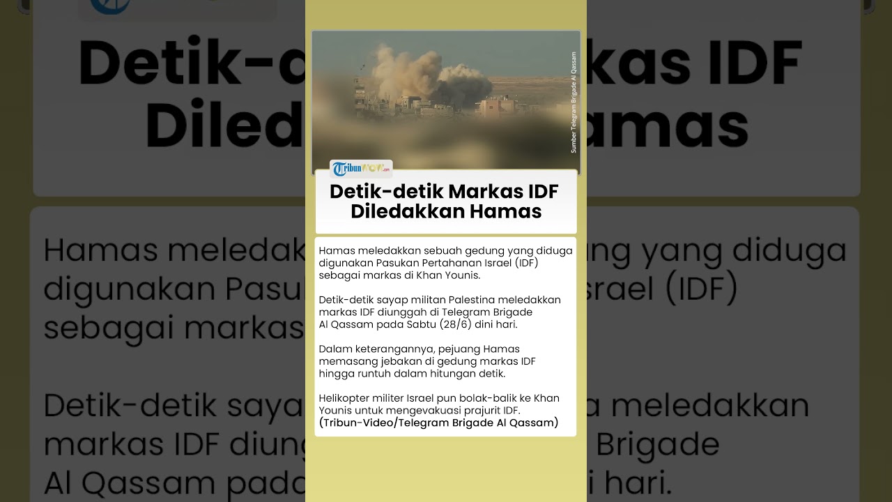 TRIBUN-VIDEO.COM - Hamas meledakkan sebuah gedung yang diduga digunakan Pasukan Pertahanan Israel (IDF) sebagai markas di Khan Younis.