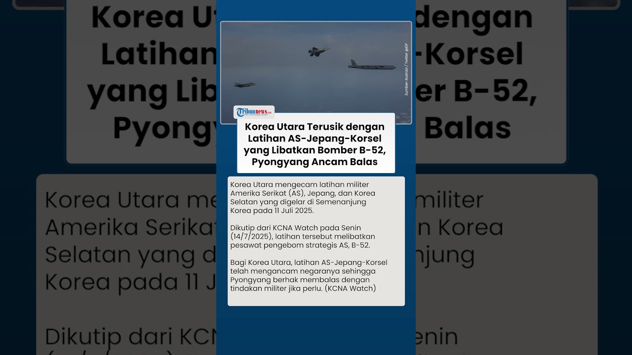 TRIBUN-VIDEO.COM - Korea Utara mengecam latihan militer Amerika Serikat (AS), Jepang, dan Korea Selatan yang digelar di Semenanjung Korea pada 11 Juli 2025.