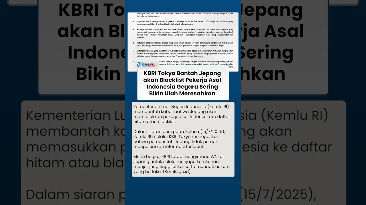 TRIBUN-VIDEO.COM - Kementerian Luar Negeri Indonesia (Kemlu RI) membantah kabar bahwa Jepang akan memasukkan pekerja asal Indonesia ke daftar hitam atau blacklist.