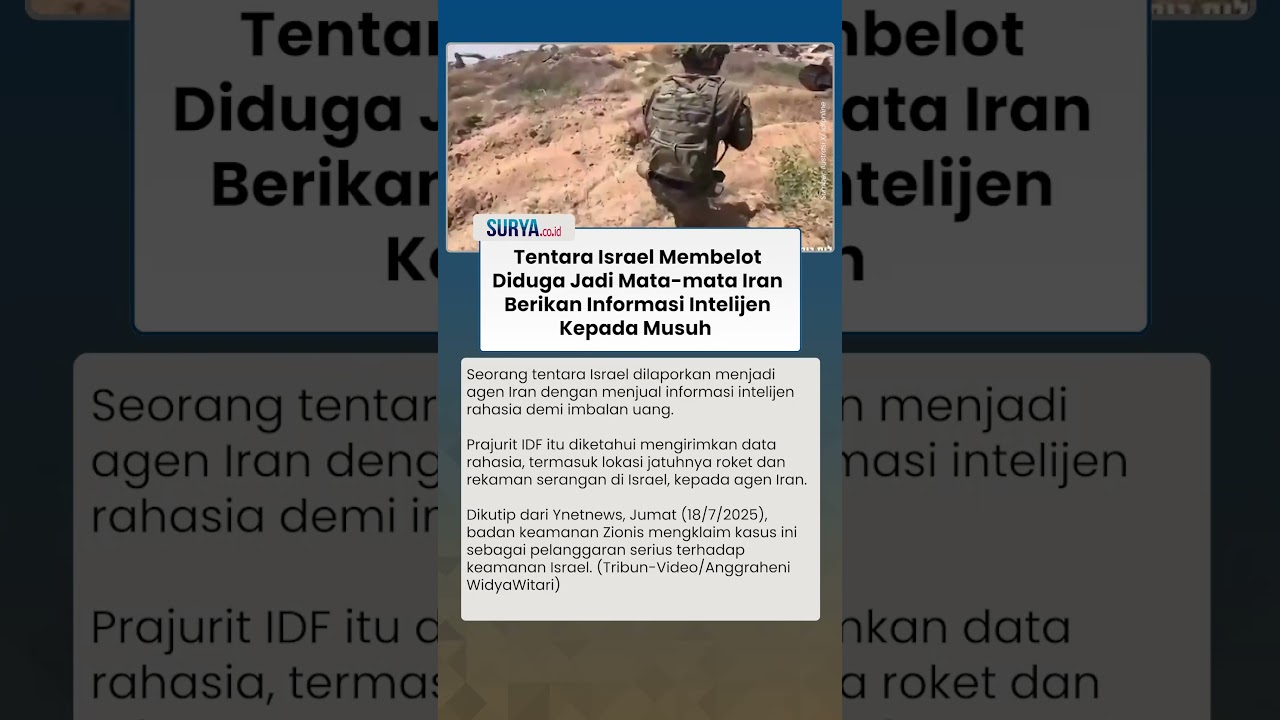 TRIBUN-VIDEO.COM - Seorang tentara Israel dilaporkan menjadi agen Iran dengan menjual informasi intelijen rahasia demi imbalan uang.