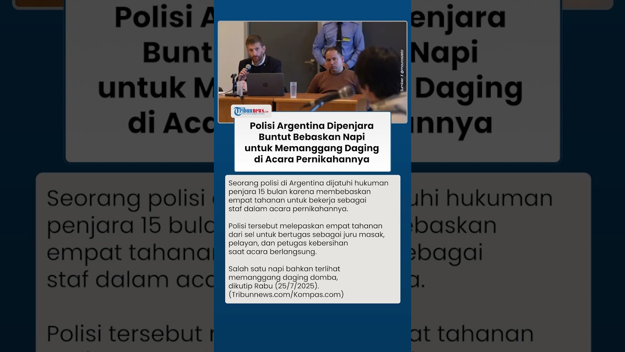 TRIBUN-VIDEO.COM - Seorang polisi di Argentina dijatuhi hukuman penjara 15 bulan dengan masa percobaan karena terbukti menyalahgunakan wewenangnya.