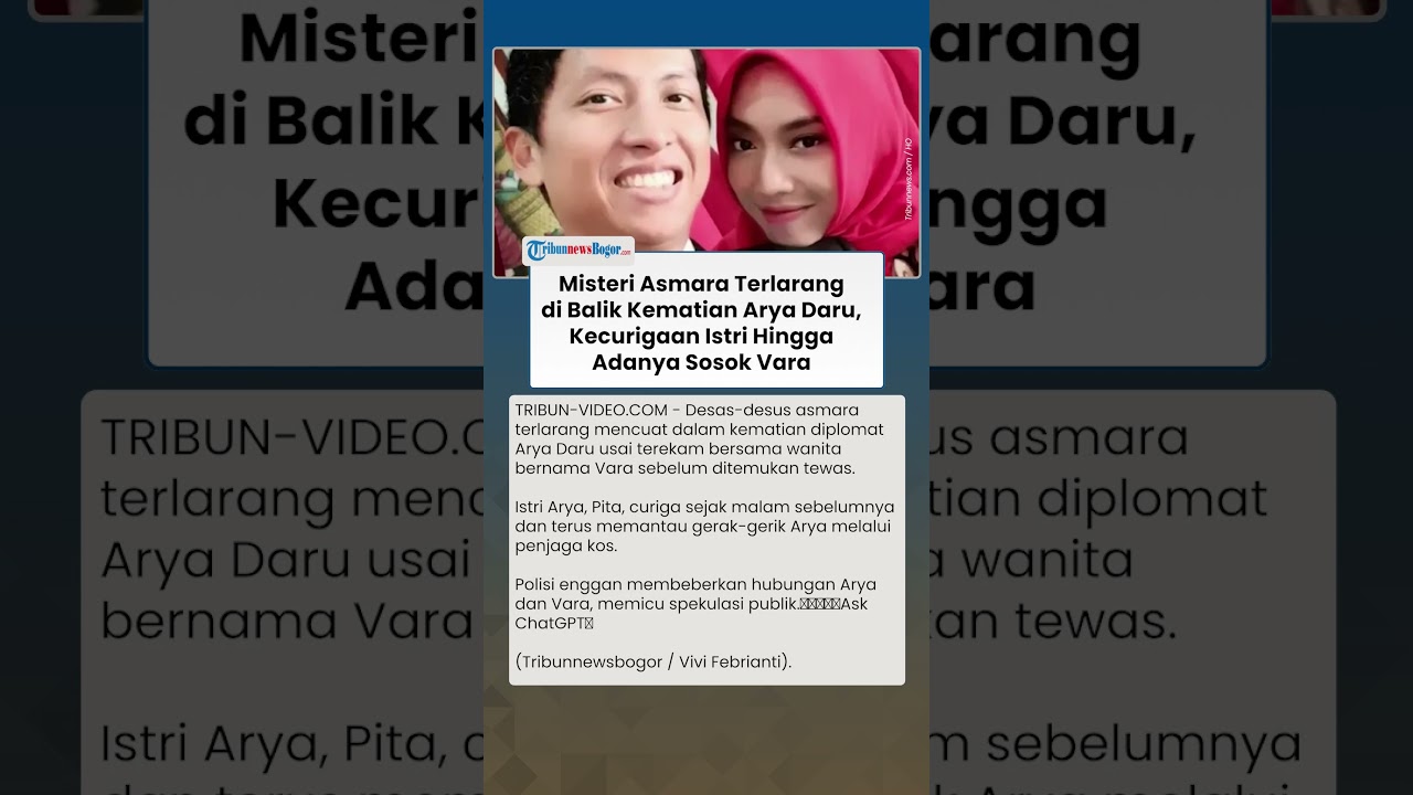 Artikel ini telah tayang di TribunnewsBogor.com dengan judul Teka-teki Asmara Terlarang di Kasus Kematian Arya Daru: Kecurigaan Istri hingga Misteri Sosok Vara