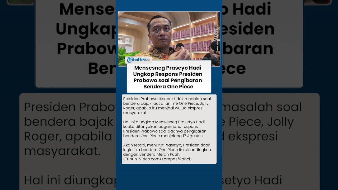 Hal ini diungkap Mensesneg Prasetyo Hadi ketika ditanyakan bagaimana respons Presiden Prabowo soal adanya pengibaran bendera One Piece menjelang 17 Agustus.