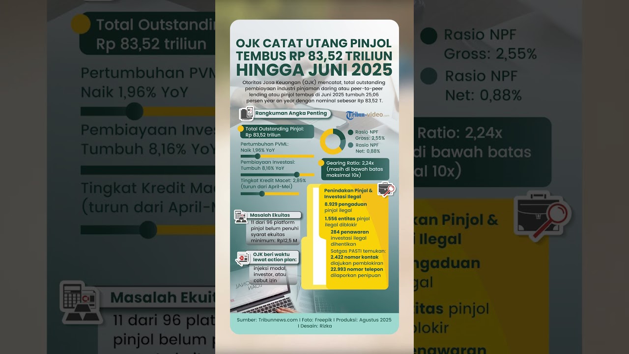 TRIBUN-VIDEO.COM - Otoritas Jasa Keuangan (OJK) mencatat, total outstanding pembiayaan industri pinjaman daring atau peer-to-peer (P2P) lending atau pinjol tembus Rp 83,52 triliun hingga Juni 2025.
