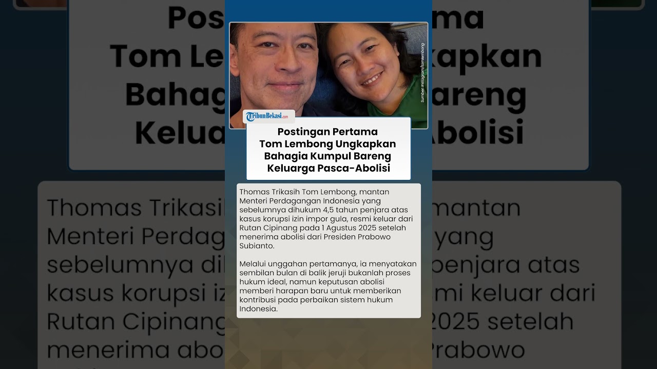 TRIBUN-VIDEO.COM - Thomas Trikasih Tom Lembong, mantan Menteri Perdagangan Indonesia yang sebelumnya dihukum 4,5 tahun penjara atas kasus korupsi izin impor gula, resmi keluar dari Rutan Cipinang pada 1 Agustus 2025 setelah menerima abolisi dari Presiden Prabowo Subianto.