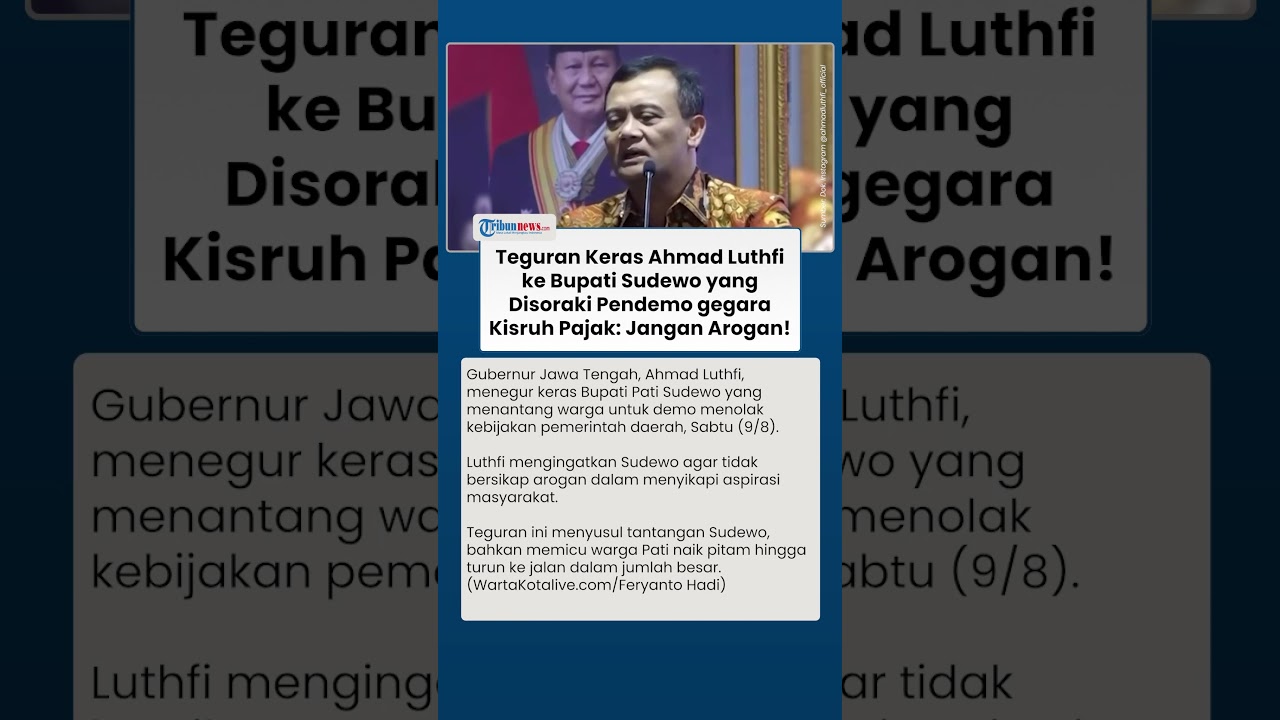Artikel ini telah tayang di WartaKotalive.com dengan judul Ahmad Luthfi Tegur Keras Bupati Pati Sudewo Yang Tantang Warga Demo: Jangan Arogan!