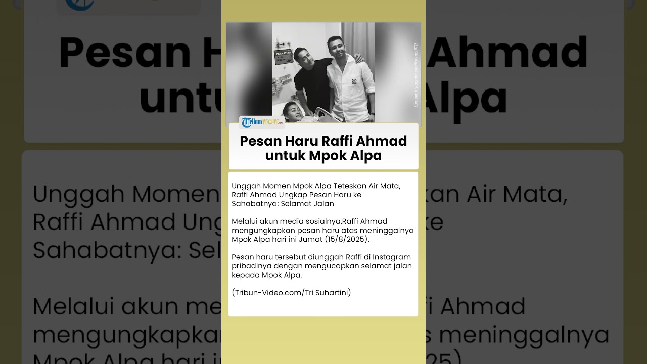 Melalui akun media sosialnya,Raffi Ahmad mengungkapkan pesan haru atas meninggalnya Mpok Alpa hari ini Jumat (15/8/2025).