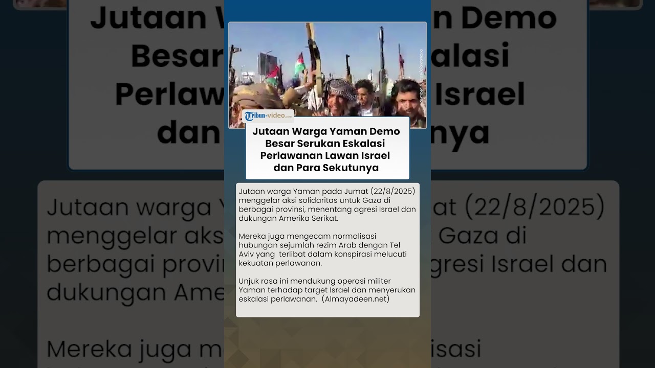 TRIBUN-VIDEO.COM - Jutaan warga Yaman pada Jumat (22/8/2025) menggelar aksi solidaritas untuk Gaza di berbagai provinsi, menentang agresi Israel dan dukungan Amerika Serikat.