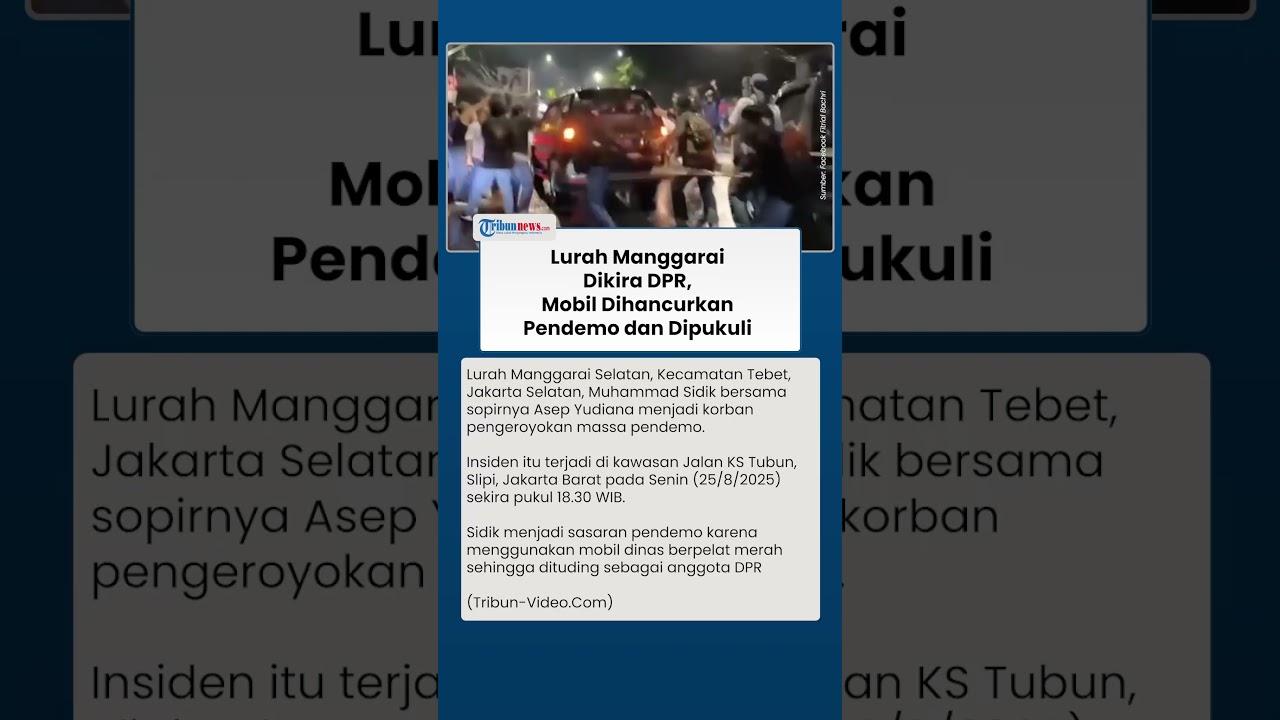 TRIBUN-VIDEO.COM - Lurah Manggarai Selatan, Kecamatan Tebet, Jakarta Selatan, Muhammad Sidik bersama sopirnya Asep Yudiana menjadi korban pengeroyokan massa pendemo.
