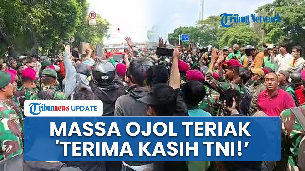 'terima kasih bapak TNI' ujar massa ojol.