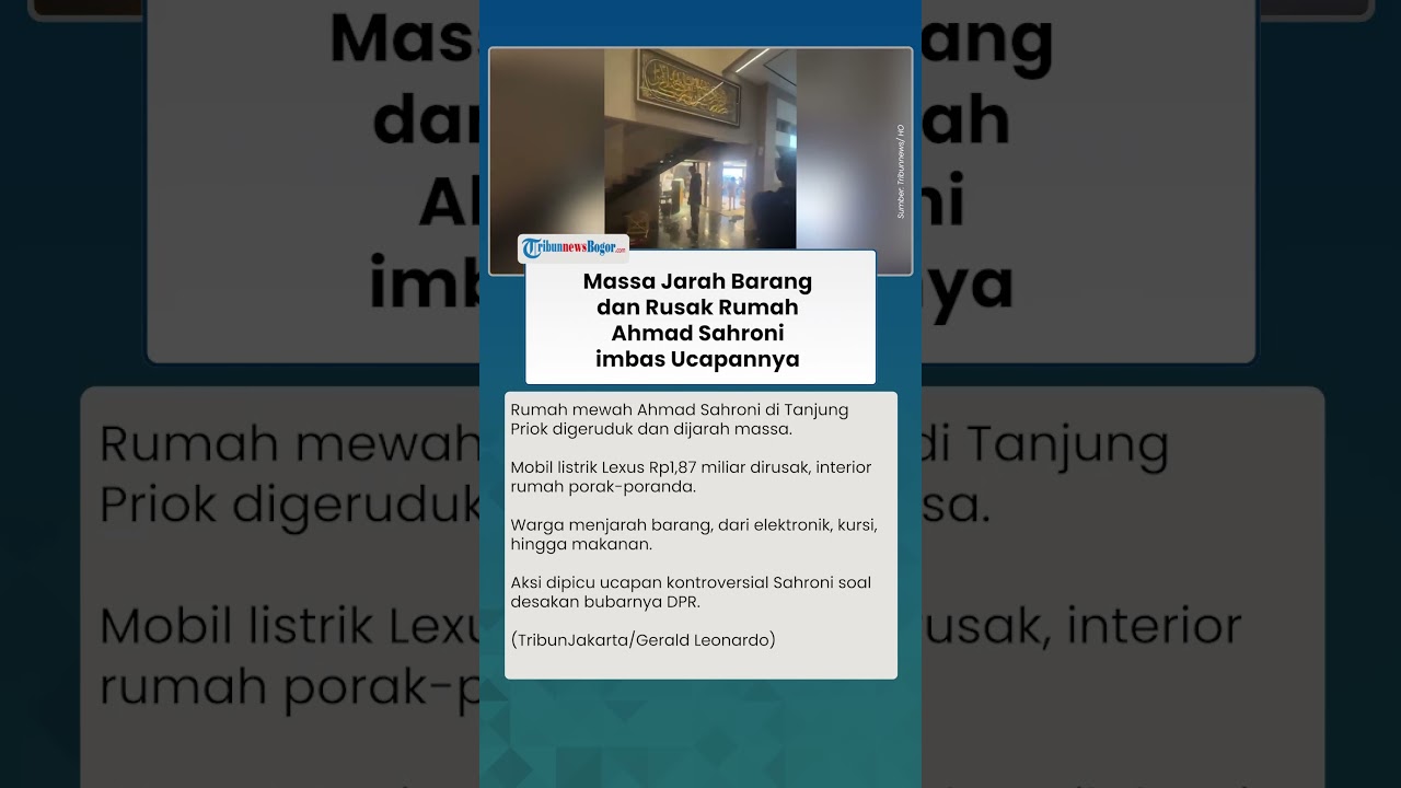 TRIBUN-VIDEO.COM - Rumah mewah milik Anggota DPR RI Ahmad Sahroni di Tanjung Priok, Jakata Utara, hancur porak-poranda seusai digeruduk massa pada Sabtu (30/8/2025) sore.