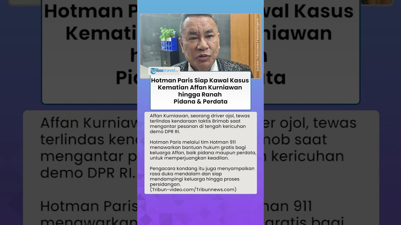 Artikel ini telah tayang di Tribunnews.com dengan judul Hotman Paris Tawarkan Bantuan Hukum Gratis ke Keluarga Affan Kurniawan