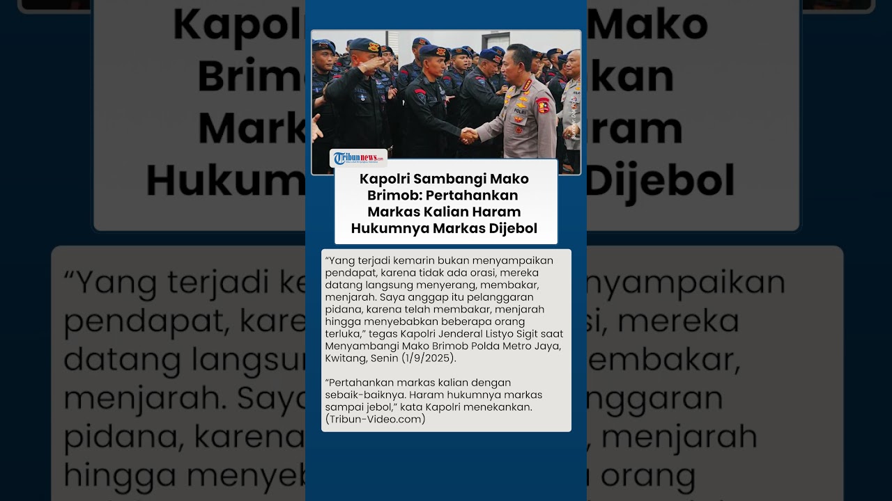 TRIBUN-VIDEO.COM - “Yang terjadi kemarin bukan menyampaikan pendapat, karena tidak ada orasi, mereka datang langsung menyerang, membakar, menjarah. Saya anggap itu pelanggaran pidana, karena telah membakar, menjarah hingga menyebabkan beberapa orang terluka,” tegas Kapolri Jenderal Listyo Sigit saat Menyambangi Mako Brimob Polda Metro Jaya, Kwitang, Senin (1/9/2025).