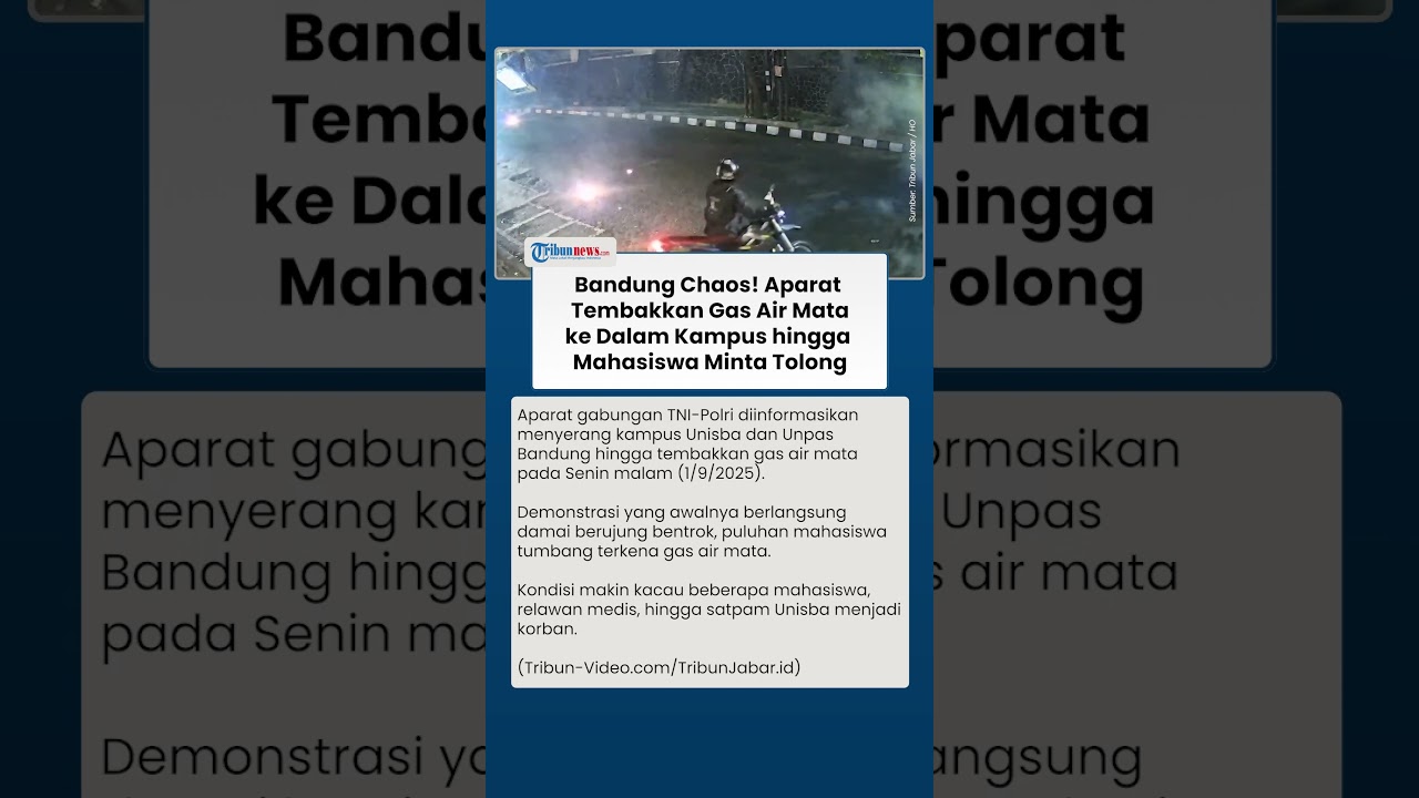 TRIBUN-VIDEO.COM- Aparat gabungan TNI-Polri menembaki gas air mata ke area kampus Universitas Islam Bandung (Unisba) dan Universitas Pasundan (Unpas), Kota Bandung, Jawa Barat.