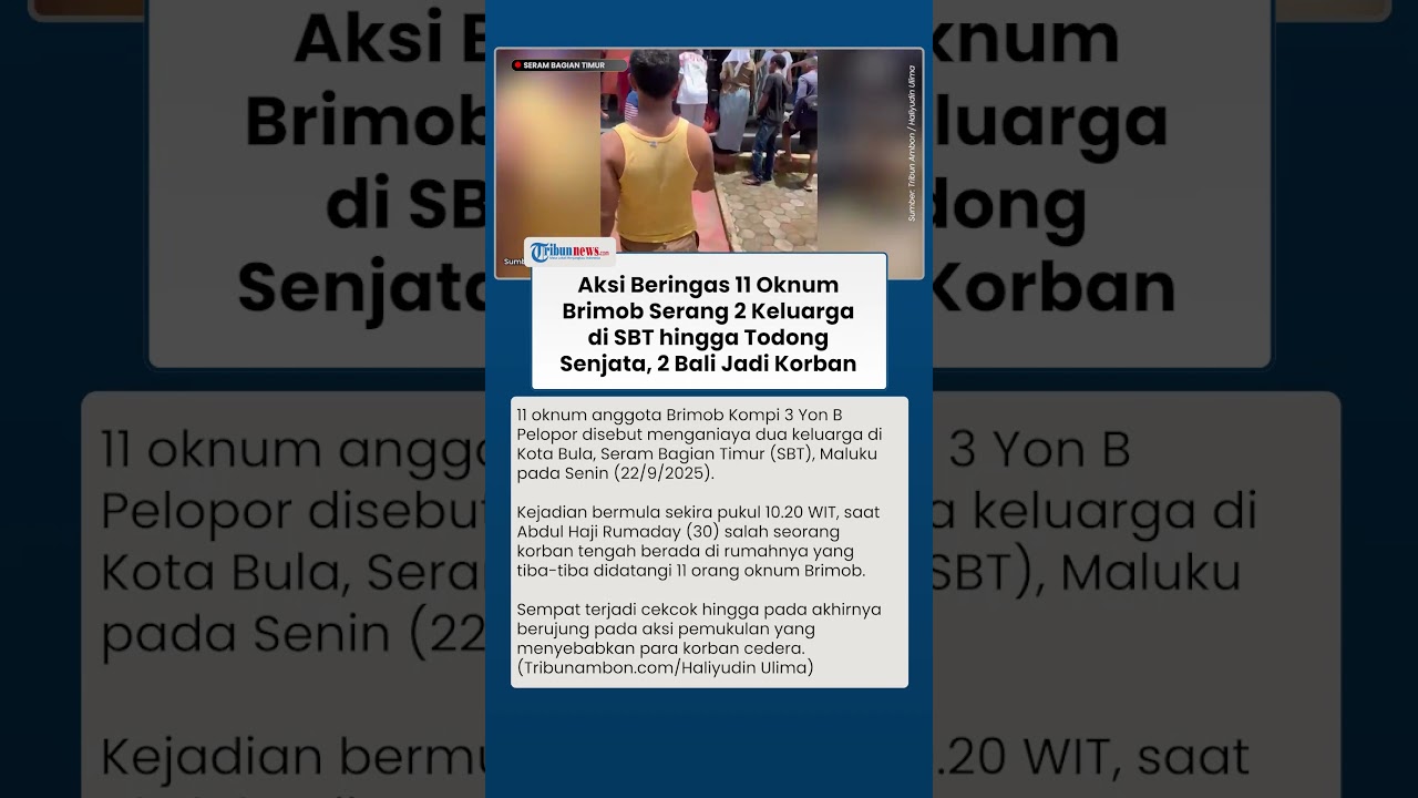TRIBUN-VIDEO.COM - 11 oknum anggota Brimob Kompi 3 Yon B Pelopor disebut menganiaya dua keluarga di Kota Bula, Seram Bagian Timur (SBT), Maluku pada Senin (22/9/2025).