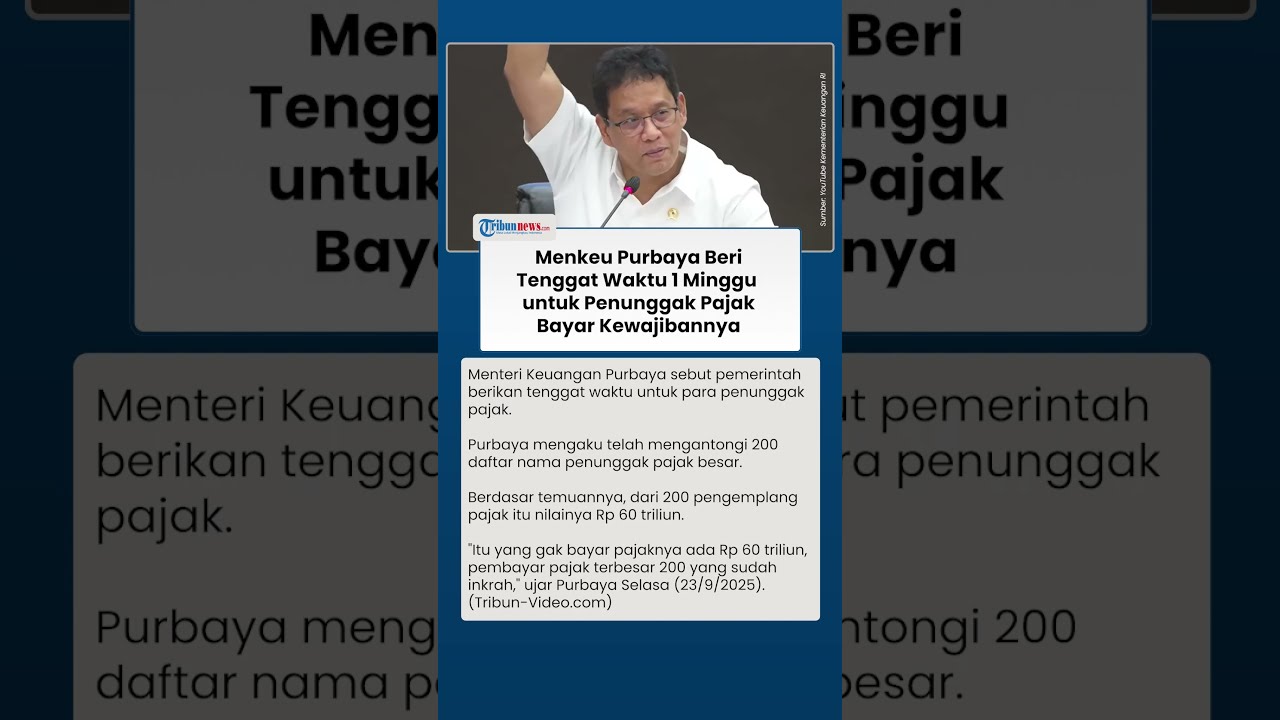 TRIBUN-VIDEO.COM - Menteri Keuangan RI Purbaya Yudhi Sadewa menyebut, pemerintah beri waktu satu Minggu untuk para pengemplang pajak agar membayar kewajibannya.