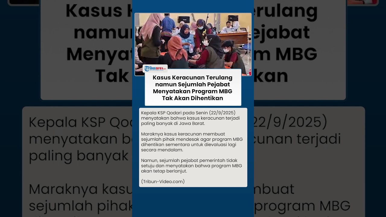 TRIBUN-VIDEO.COM - Sejumlah pejabat pemerintahan telah menyatakan program Makan Bergizi Gratis (MBG) tidak akan dihentikan di tengah masih terjadinya kasus keracunan massal di sejumlah daerah di Indonesia.