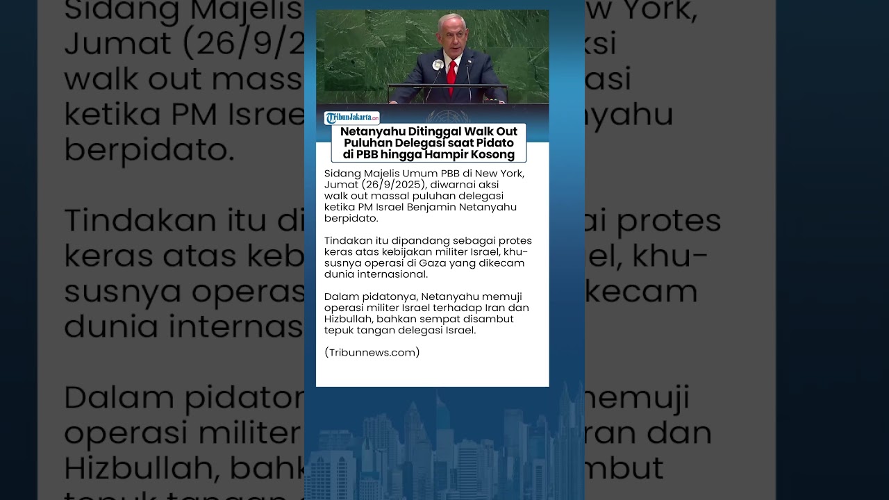 TRIBUN-VIDEO.COM - Nyaris semua delegasi negara walk out saat PM Israel Benjamin Netanyahu hendak berpidato di Sidang Majelis Umum PBB pada Jumat (26/9).