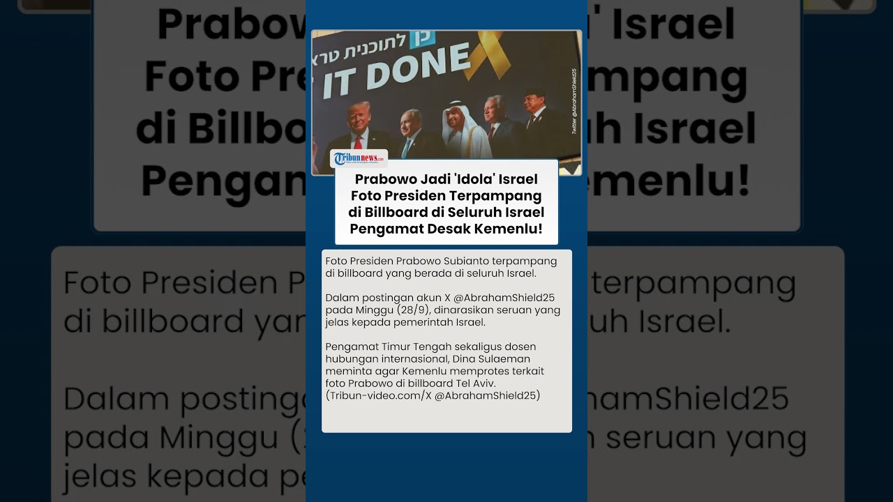 TRIBUN-VIDEO.COM - Foto Presiden Prabowo Subianto terpampang di billboard yang berada di seluruh Israel.