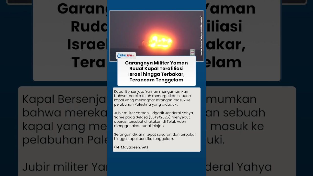 TRIBUN-VIDEO.COM - Kapal Bersenjata Yaman mengumumkan bahwa mereka telah menargetkan sebuah kapal yang melanggar larangan masuk ke pelabuhan Palestina yang diduduki.