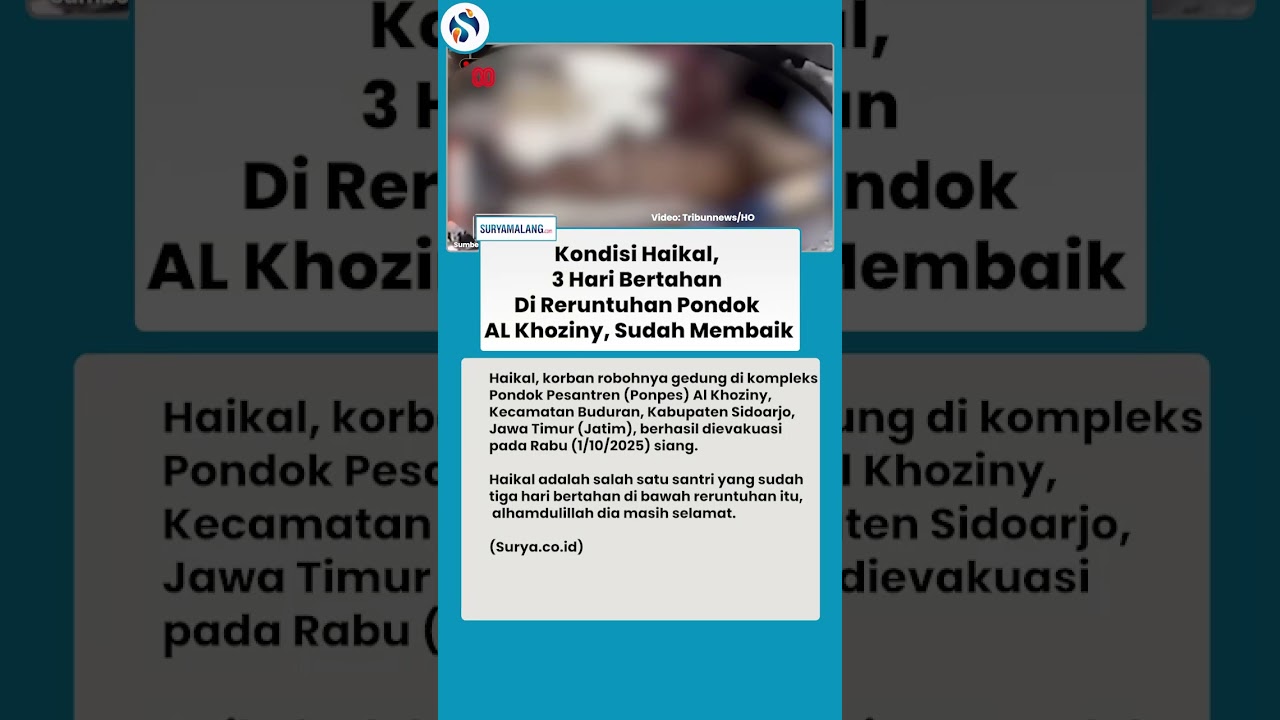 Artikel ini telah tayang di Surya.co.id dengan judul Kondisi Haikal, 3 Hari Bertahan Di Reruntuhan Pondok AL Khoziny, Sudah Membaik