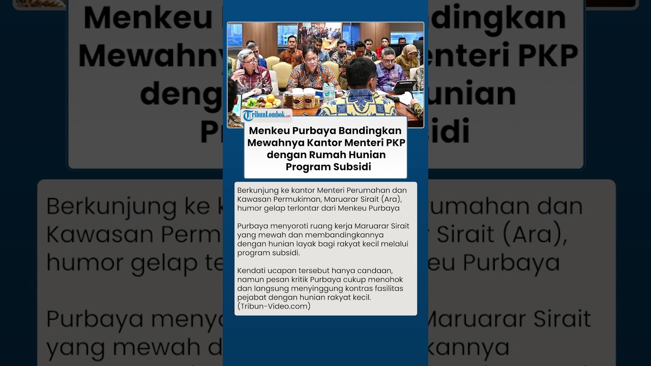 BERI SINDIRAN ! Menkeu Bandingkan Mewahnya Kantor Menteri PKP dengan Rumah Hunian Program Subsidi