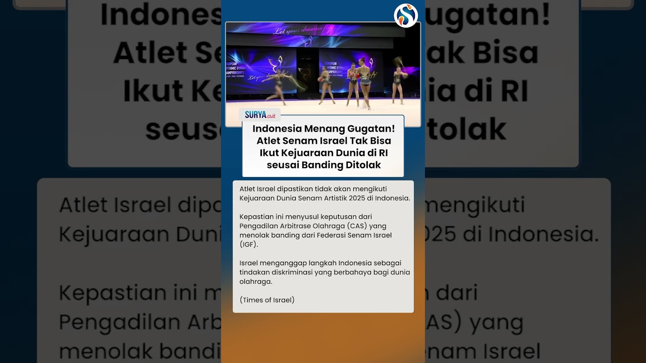 Kepastian ini menyusul keputusan dari Pengadilan Arbitrase Olahraga (CAS) yang menolak banding dari Federasi Senam Israel (IGF).