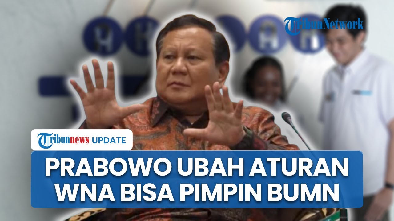 TRIBUN-VIDEO.COM - Presiden Prabowo Subianto, mengumumkan bahwa pemerintah telah mengubah aturan untuk memperbolehkan warga negara asing (WNA) atau ekspatriat memimpin perusahaan Badan Usaha Milik Negara (BUMN).