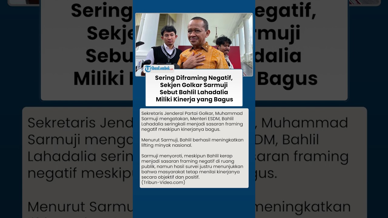 TRIBUN-VIDEO.COM - Sekretaris Jenderal Partai Golkar, Muhammad Sarmuji mengatakan, Menteri ESDM, Bahlil Lahadalia seringkali menjadi sasaran framing negatif meskipun kinerjanya bagus.