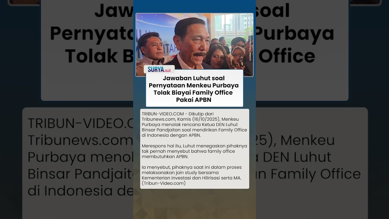 Artikel ini telah tayang di Tribunnews.com dengan judul 2 Kali Menkeu Purbaya Tolak Permintaan Luhut, Ogah Danai Family Office, Hanya Akan Doakan
