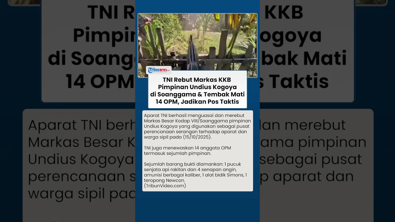 TRIBUN-VIDEO.COM - Aparat TNI berhasil menguasai dan merebut Markas Besar Kodap VIII/Soanggama pimpinan Undius Kogoya yang digunakan sebagai pusat perencanaan serangan terhadap aparat dan warga sipil pada (15/10/2025).
