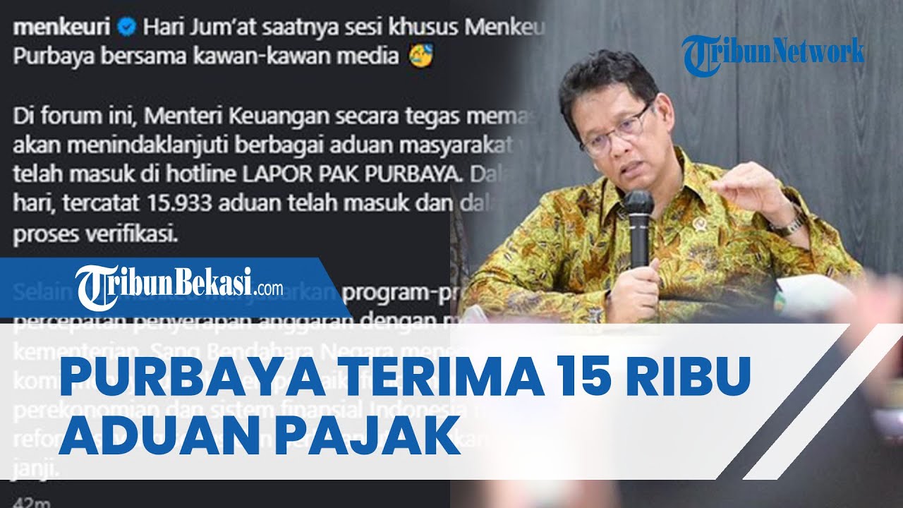 TRIBUN-VIDEO.COM - Dalam dua hari membuat aduan pajak dan bea cukai, Menteri Keuangan RI Purbaya Yudhi Sadewa mengaku menerima 15.933 laporan.