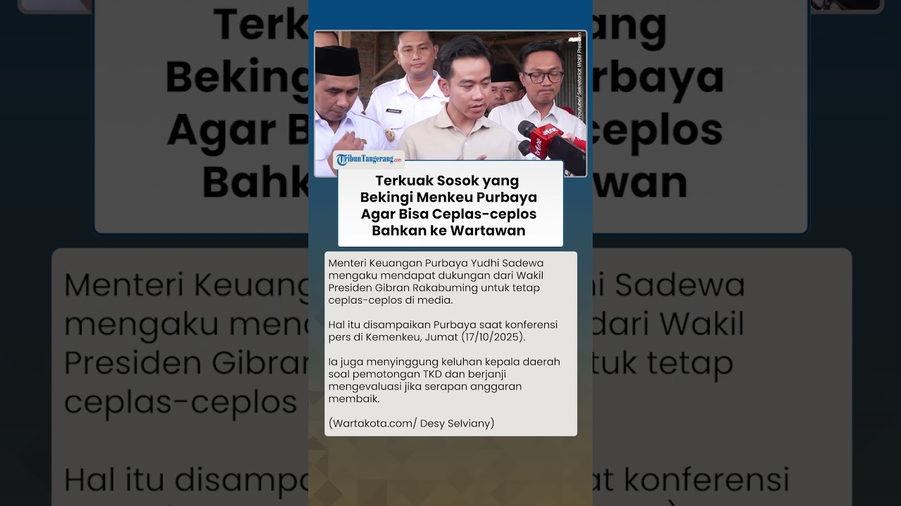 Dukungan Gibran itu disampaikan Purbaya dalam konferensi pers yang digelar di Gedung Kementerian Keuangan RI, Jakarta pada Jumat (17/10/2025).