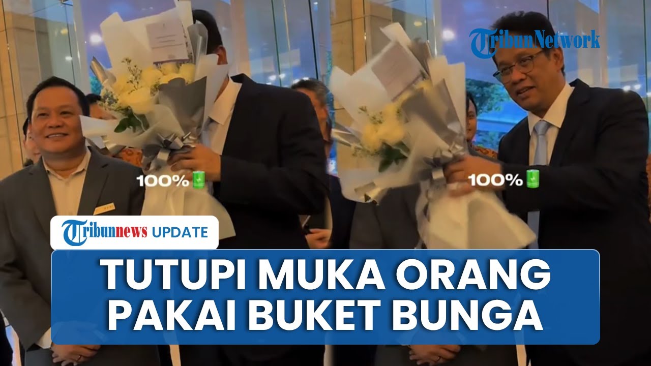 Tingkah Usil Menkeu Purbaya saat Hadiri "1 Tahun Prabowo-Gibran", Tutupi Muka Orang Pakai Bunga