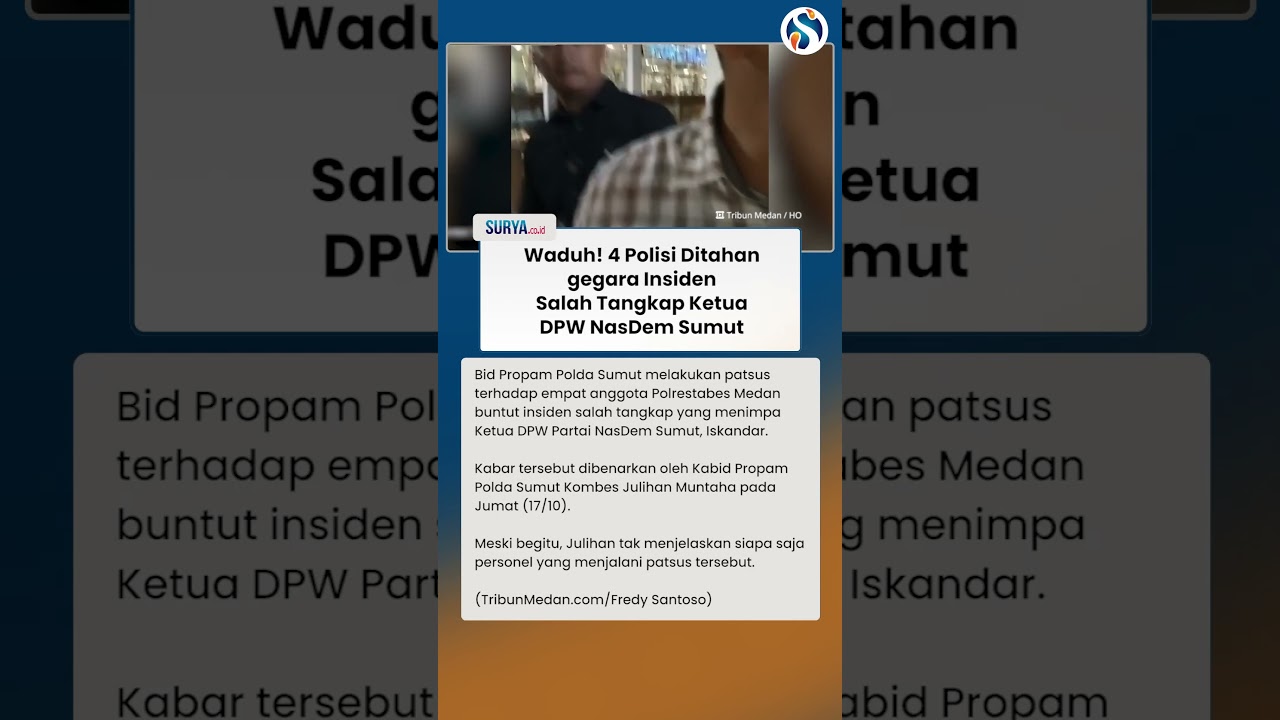 TRIBUN-VIDEO.COM - Bid Propam Polda Sumut saat ini melakukan patsus terhadap empat anggota Polrestabes Medan buntut insiden salah tangkap yang menimpa Ketua DPW Partai NasDem Sumut, Iskandar.