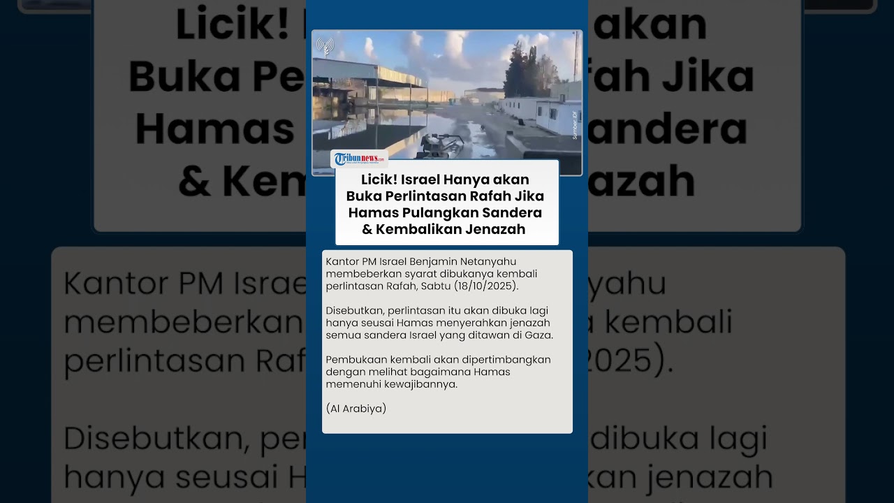TRIBUN-VIDEO.COM - Kantor PM Israel Benjamin Netanyahu membeberkan syarat dibukanya kembali perlintasan Rafah, Sabtu (18/10/2025).