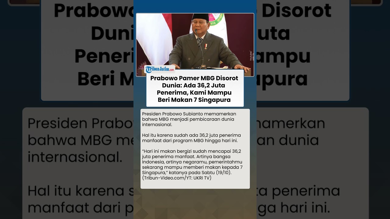 “Hari ini makan bergizi sudah mencapai 36,2 juta penerima manfaat. Artinya bangsa Indonesia, artinya negaramu, pemerintahmu sekarang mampu memberi makan kepada 7 Singapura,” katanya pada Sabtu (19/10). (Tribun-Video.com)