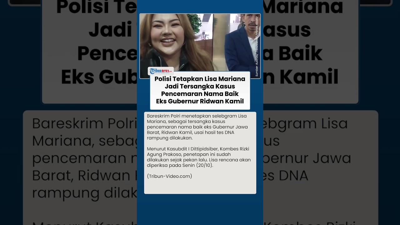 TRIBUN-VIDEO.COM - Bareskrim Polri menetapkan selebgram Lisa Mariana, sebagai tersangka kasus pencemaran nama baik eks Gubernur Jawa Barat, Ridwan Kamil, usai hasil tes DNA rampung dilakukan.