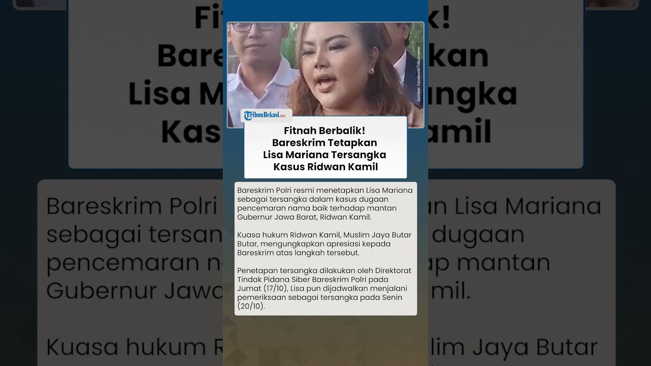 TRIBUN-VIDEO.COM - Bareskrim Polri resmi menetapkan selebgram Lisa Mariana sebagai tersangka dalam kasus dugaan pencemaran nama baik terhadap mantan Gubernur Jawa Barat, Ridwan Kamil.