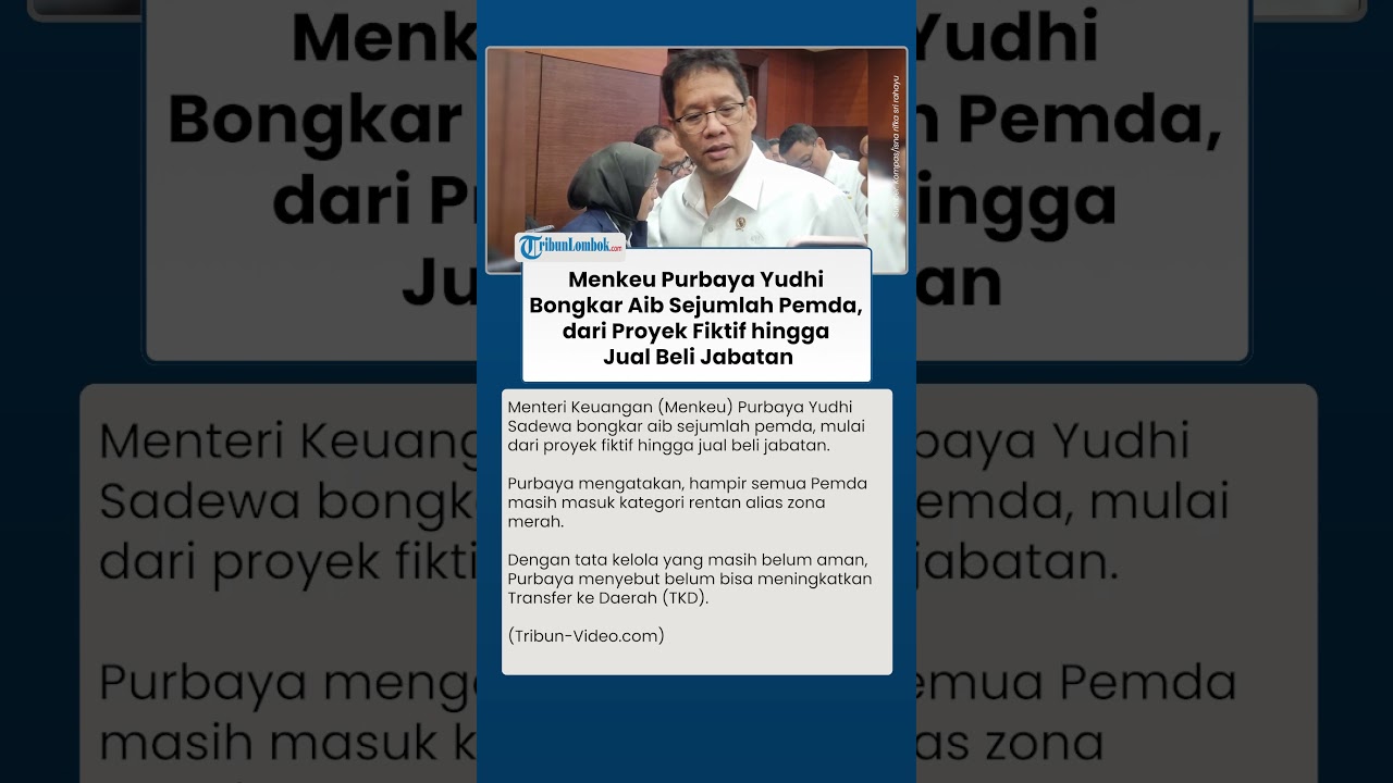 TRIBUN-VIDEO.COM - Menteri Keuangan (Menkeu) Purbaya Yudhi Sadewa bongkar aib sejumlah pemda, mulai dari proyek fiktif hingga jual beli jabatan.