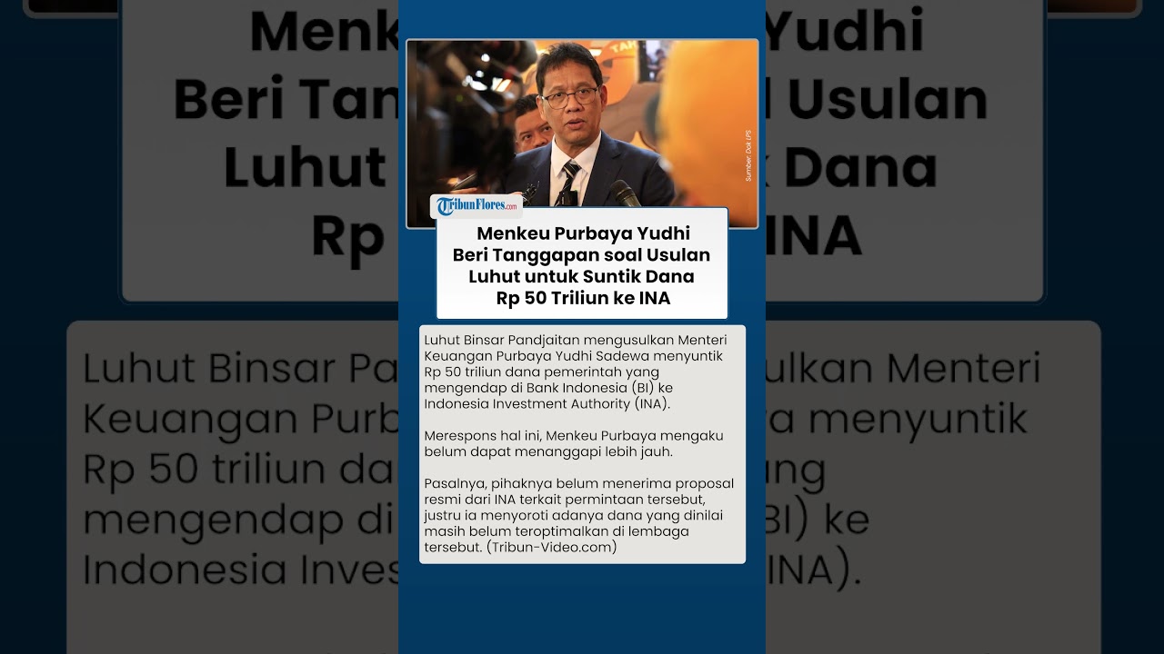 TRIBUN-VIDEO.COM - Ketua Dewan Ekonomi Nasional (DEN) Luhut Binsar Pandjaitan mengusulkan Menteri Keuangan Purbaya Yudhi Sadewa menyuntik Rp 50 triliun dana pemerintah yang mengendap di Bank Indonesia (BI) ke Indonesia Investment Authority (INA).