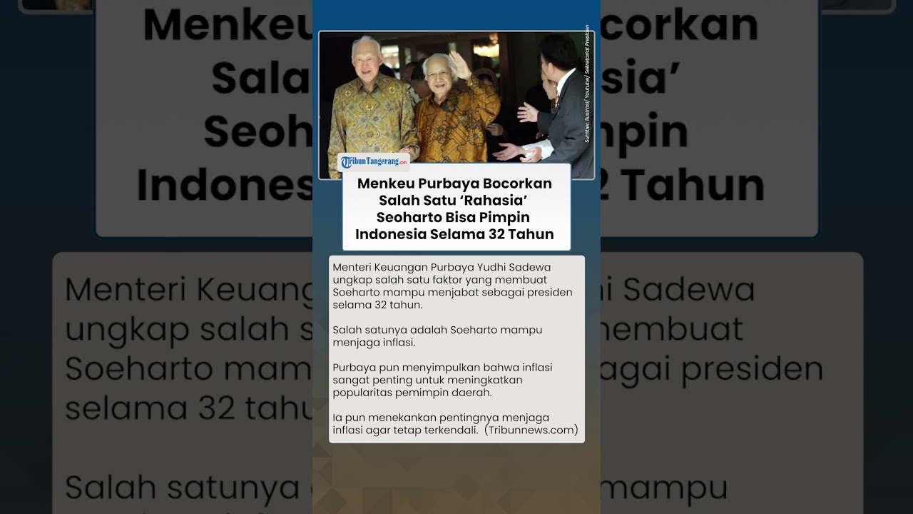 SUMBER: https://www.tribunnews.com/bisnis/7744083/menkeu-purbaya-ungkap-penyebab-soeharto-bertahan-pimpin-indonesia-selama-32-tahun?page=all&s=paging_new